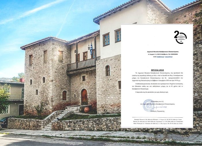 Το Δημοτικό Μουσείο Καλαβρυτινού Ολοκαυτώματος στο πλαίσιο του εορτασμού των 20 χρόνων από την ίδρυσή του διοργανώνει την περιοδική έκθεση με τίτλο: “Από το Σκοτάδι στο Φως: Αντικείμενα και μνήμες του Καλαβρυτινού Ολοκαυτώματος”. Η έκθεση, παράλληλα, εντάσσεται στις εκδηλώσεις μνήμης του Δήμου Καλαβρύτων για την συμπλήρωση 82 χρόνων από το Καλαβρυτινό Ολοκαύτωμα. Η έκθεση επιδιώκει να σκιαγραφήσει πτυχές αυτής της καθοριστικής περιόδου που σημάδεψε για πάντα την ιστορία της πόλης των Καλαβρύτων αλλά και της ευρύτερης περιοχής. Τα εγκαίνια της έκθεσης θα πραγματοποιηθούν στο Αρχοντικό της Παλαιολογίνας το Σάββατο 6 Δεκεμβρίου…