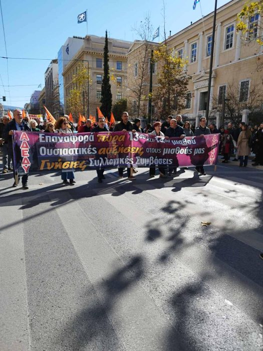 - τη διεκδίκηση του 13ου και 14ου μισθού,