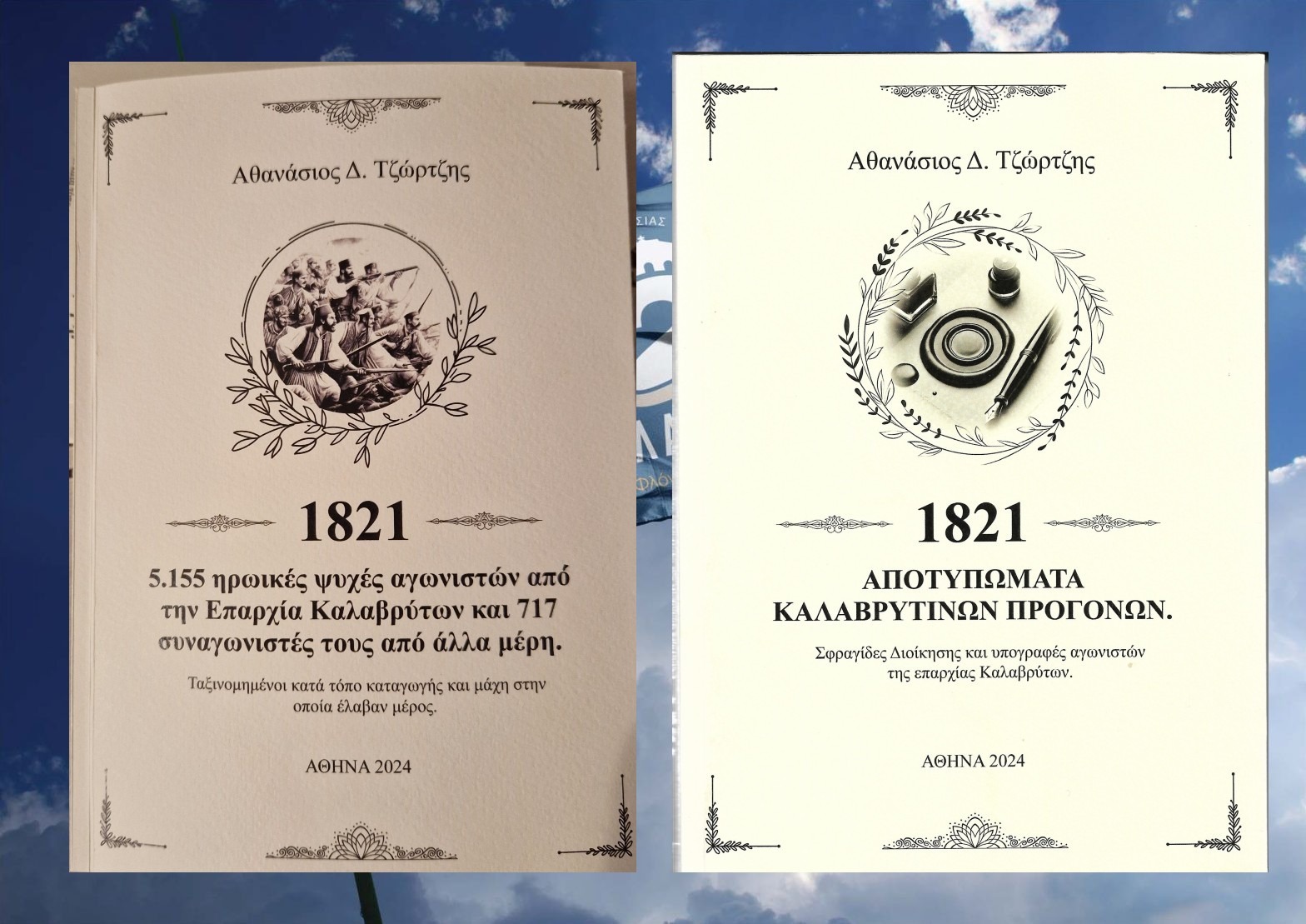 Με αφορμή την έκδοση, δύο νέων (2024) πονημάτων, με τίτλο:1) «5.155 ηρωικές ψυχές αγωνιστών του 1821, από την επαρχία Καλαβρύτων και 717 συναγωνιστές τους, από άλλα μέρη»—————— και 2)«ΑΠΟΤΥΠΩΜΑΤΑ ΚΑΛΑΒΡΥΤΙΝΩΝ ΠΡΟΓΟΝΩΝ. – Σφραγίδες Διοίκησης και υπογραφές αγωνιστών της επαρχίας Καλαβρύτων», τα οποία συνέγραψε ο εξαίρετος συμπατριώτης μας ΑΘΑΝΑΣΙΟΣ ΔΗΜ. ΤΖΩΡΤΖΗΣ, από το χωριό Προφήτης Ηλίας Καλαβρύτων ή Γκέρμπεσι, ένιωσα την ανάγκη να σημειώσω τα ακόλουθα: