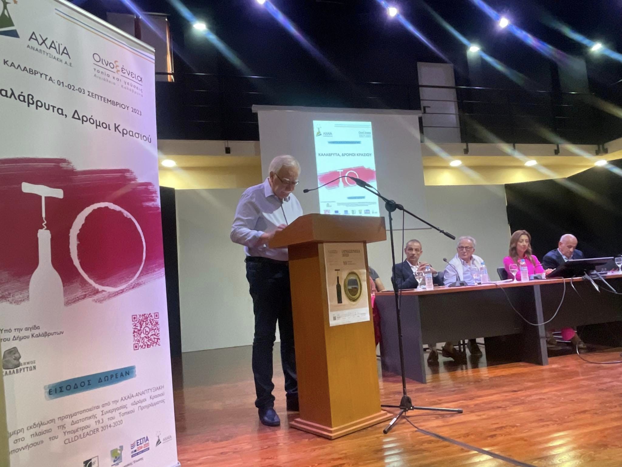 Στο σημαντικό έργο της εταιρείας «Αχαΐα-Αναπτυξιακή Α.Ε.» και στις συντονισμένες δράσεις της για την ανάδειξη της οινικής ταυτότητας της περιοχής Καλαβρύτων και την προώθηση τοπικών στρατηγικών και συνεργατικών δράσεων, αναφέρθηκε ο Δήμαρχος Καλαβρύτων Θανάσης Παπαδόπουλος κατά τον χαιρετισμό του στην ημερίδα «Καλάβρυτα, στους Δρόμους του Κρασιού Πελοποννήσου», το πρωί του Σαββάτου.
