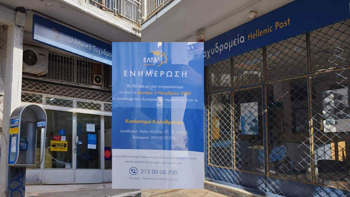 Η περιοχή της Κλειτορίας θα εξυπηρετείται πλέον από τα ΕΛΤΑ Καλαβρύτων και η Δάφνη από τα ΕΛΤΑ Τροπαίων.