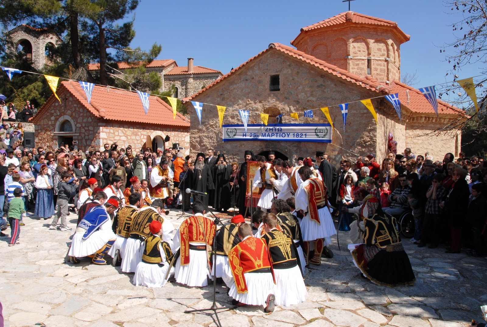 Στις 25 Μαρτίου οι εκδηλώσεις θα έχουν επίκεντρο τη μονή της Αγίας Λαύρας, όπου σύμφωνα με την ιστορία, ο Παλαιών Πατρών Γερμανός σήκωσε το λάβαρο της επανάστασης.