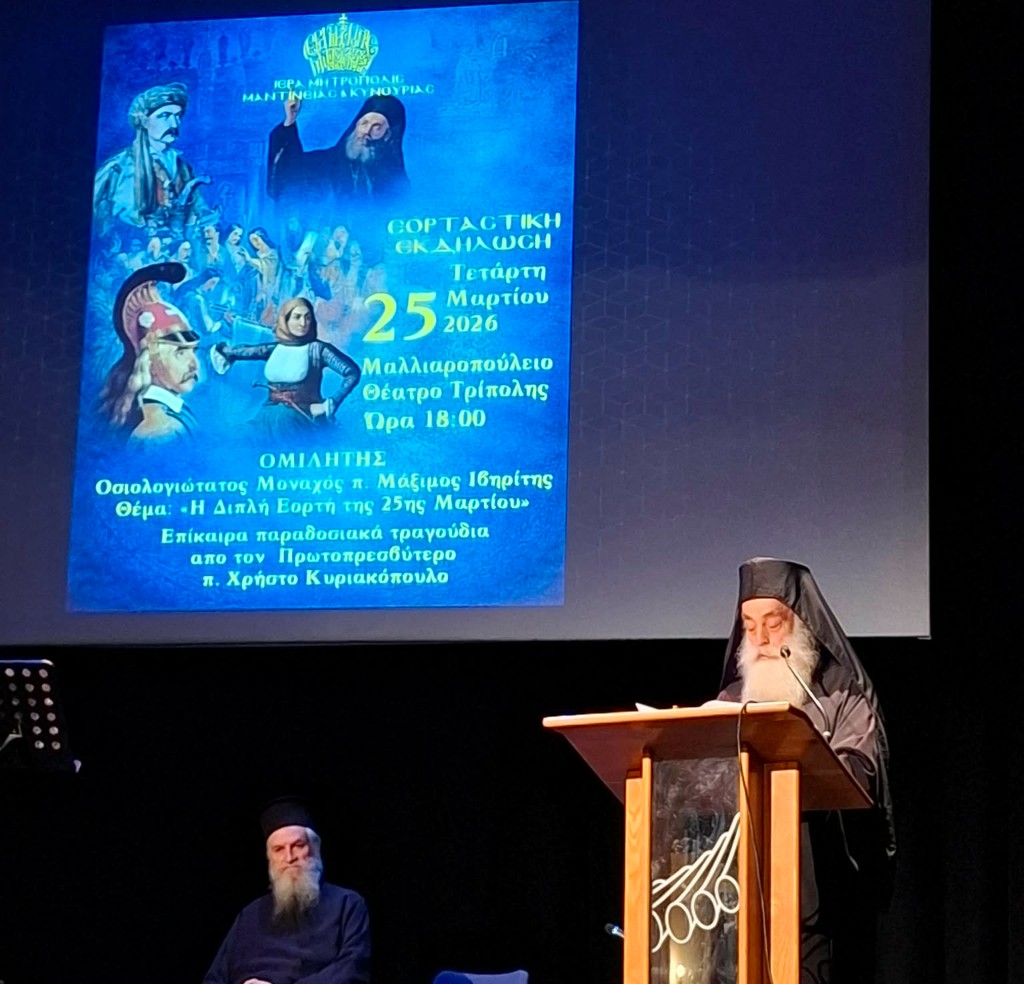 Με ιδιαίτερη τιμή και πνευματική χαρά, παρευρεθήκαμε στην εορταστική εκδήλωση για την εθνική και θρησκευτική μας εορτή, την Τετάρτη 25 Μαρτίου 2026, στο κατάμεστο Μαλλιαροπούλειο Θέατρο Τρίπολης.