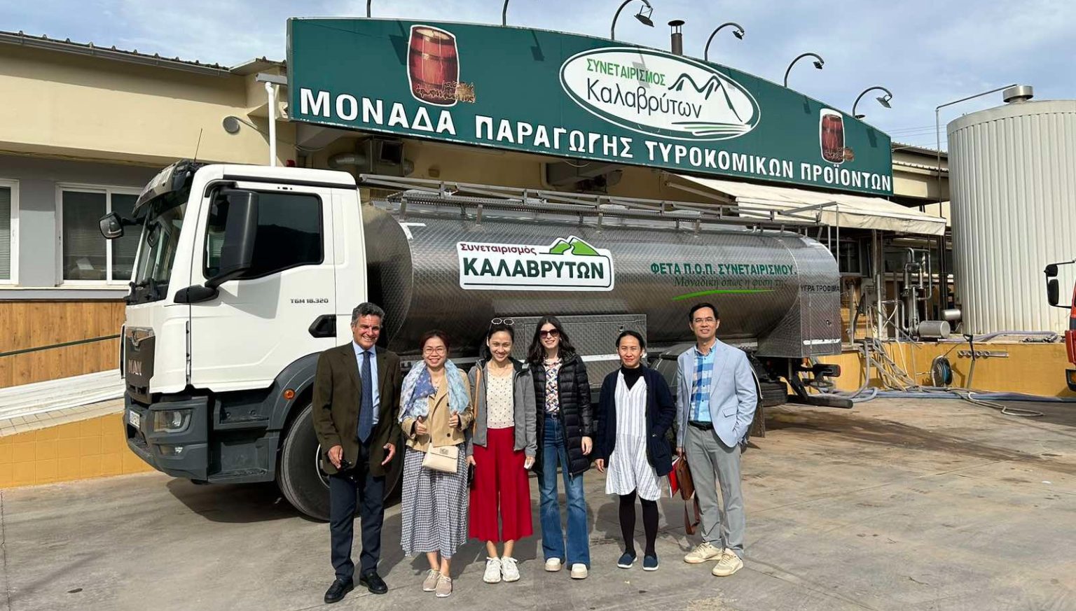 Εμπορική αντιπροσωπεία από το ΒΙΕΤΝΑΜ στο Συνεταιρισμό Καλαβρύτων Στο πλαίσιο του προγράμματος εμπορικών συνεργασιών της ΕΘΕΑΣ (Εθνική Ένωση Αγροτικών Συνεταιρισμών Ελλάδος) με χώρες της Ασίας, τετραμελής αντιπροσωπεία από το ΒΙΕΤΝΑΜ επισκέφθηκε τον Συνεταιρισμό ΚΑΛΑΒΡΥΤΩΝ την Παρασκευή 3 Νοεμβρίου.Αφού ξεναγήθηκαν στο τυροκομείο μας και ψυγεία αποθήκευσης & ωρίμανσης της Βαρελίσιας ΦΕΤΑΣ ΠΟΠ του Συνεταιρισμού, η αντιπροσωπεία επισκέφθηκε τα γραφεία μας, όπου τους υποδέχθηκε το Διοικητικό Συμβούλιο, με τον Πρόεδρο Π.Σατολιά και τον Γενικό Διευθυντή Κ.Λάτση, για παρουσίαση και συζήτηση επί των προοπτικών Εξαγωγών των προϊόντων μας στην αναπτυσσόμενη αγορά του Βιετνάμ.…