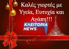 Η Συντακτική Ομάδα των «ΚΛΕΙΤΟΡΙΑ ΝΕΑ» εύχεται σε όλο τον κόσμο Καλές γιορτές, με υγεία και δύναμη Καλές Γιορτές σε όλους! Καλά Χριστούγεννα! Καλή Χρονιά! … Χρόνια πολλά και δημιουργικά!!! Χριστούγεννα γεμάτα υγεία, αγάπη, και ευτυχία. Καλές γιορτές! Ας δημιουργήσουμε αξέχαστες αναμνήσεις αυτά τα Χριστούγεννα! Χρόνια πολλά