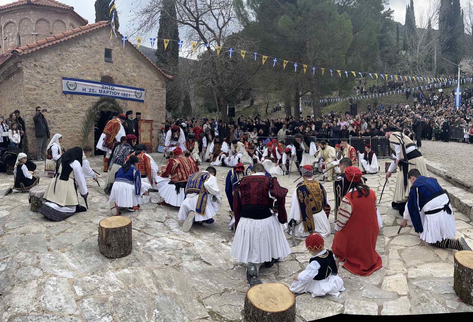 ΣΤΗ ΙΣΤΟΡΙΚΗ ΜΟΝΗ ΑΓ. ΛΑΥΡΑΣ Σήμερα Δευτέρα 25η Μαρτίου στην Ιστορική Μονή Λαύρας στις 7 π.μ. οι εκδηλώσεις ξεκίνησαν με Θεία Λειτουργία στο Καθολικό της Μονής, προεξάρχοντος του Σεβασμιότατου Μητροπολίτη Καλαβρύτων και Αιγιαλείας κ.κ. Ιερώνυμου. Στη συνέχεια, στο Πανελλήνιο Ηρώο Εθνικής Παλιγγενεσίας Αγωνιστών του 1821 (10.25 π.μ.), τρισάγιο και κατάθεση στεφάνων και ακολούθως, στον προαύλιο χώρο της Μονής Αγίας Λαύρας, δοξολογία (11.15 π.μ.) και ομιλία απ’ τον Επίτιμο Αντεισαγγελέα του Αρείου Πάγου Αθανάσιο Κατσιρώδη. Ακολούθησε (11.50 π.μ.) αναπαράσταση της ορκωμοσίας των Αγωνιστών και κήρυξης της Επανάστασης του 1821 από τον…