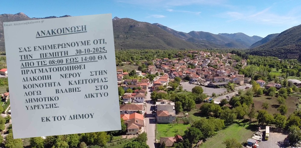 Κλειτορία: Διακοπή υδροδότησης λόγω Βλάβης την Πέμπτη 30-10-2025
