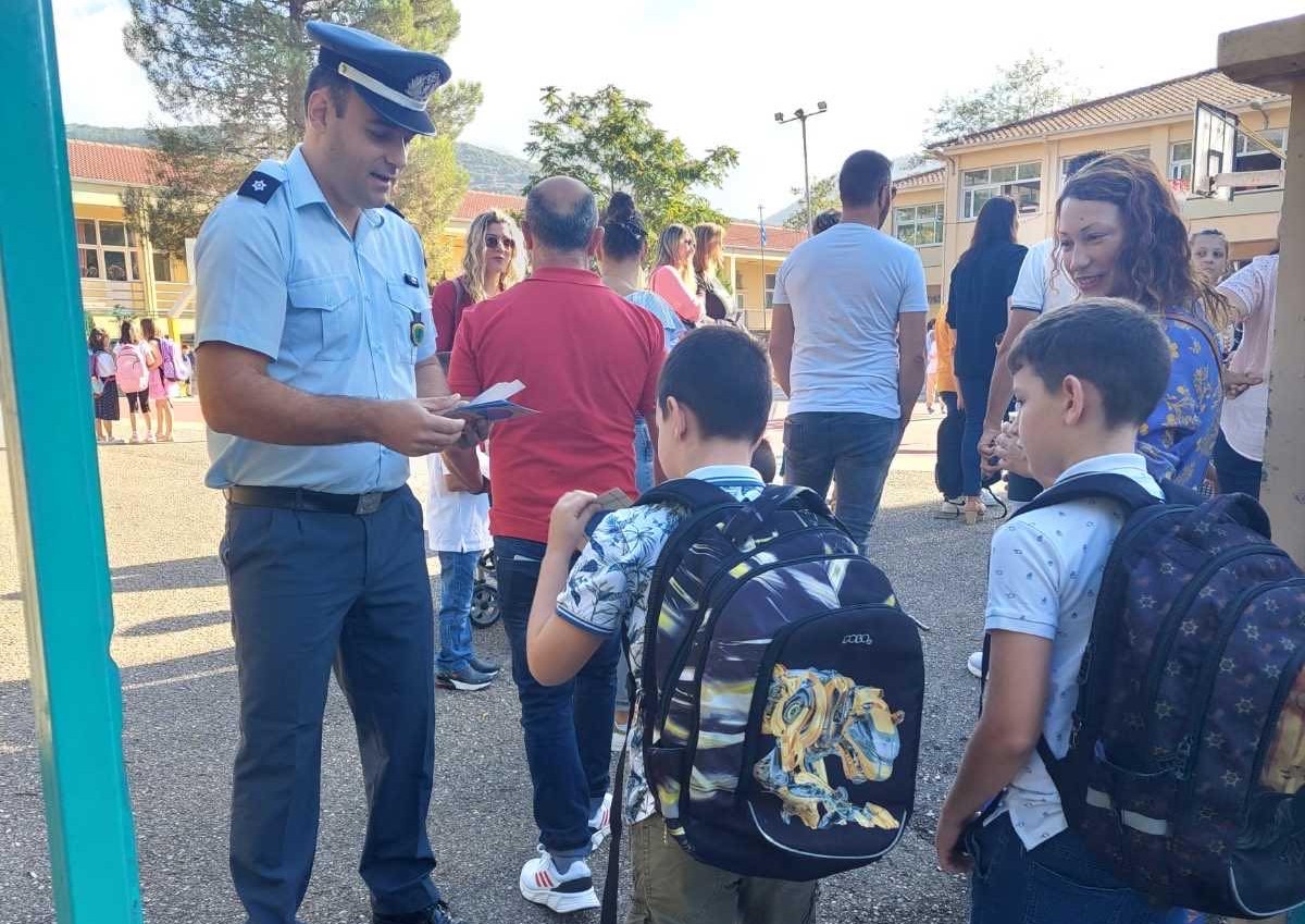 Αστυνομικοί του Τμήματος Κλειτορίας, διανέμοντας ενημερωτικά φυλλάδια κυκλοφοριακού περιεχομένου σε μαθητές και γονείς, στο πλαίσιο της έναρξης του νέου σχολικού έτους, σε σχολεία της Ψωφίδος, της Δάφνης και της Κλειτορίας Καλαβρύτων, και συγκεκριμένα ο υποδιοικητής του, υπαστυνόμος Β’ Αλέξανδρος Βλάχος, και ο αρχιφύλακας Σπυρίδων Τσακρίλης, προχώρησαν σε δράση ενημέρωσης και πληροφόρησης. Η ασφαλής μετάβαση των παιδιών από το σπίτι στο σχολείο και αντίστροφα αποτελεί μείζονα προτεραιότητα και για το λόγο αυτό υπενθυμίζονται χρήσιμες συμβουλές. Παράλληλα, πραγματοποιήθηκαν έλεγχοι στα οχήματα που μεταφέρουν τους μαθητές προς και από τα σχολεία, εξασφαλίζοντας ότι πληρούνται όλες οι απαραίτητες προϋποθέσεις για την ασφαλή μετακίνηση…